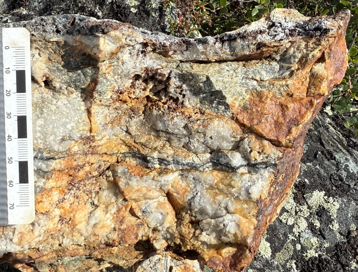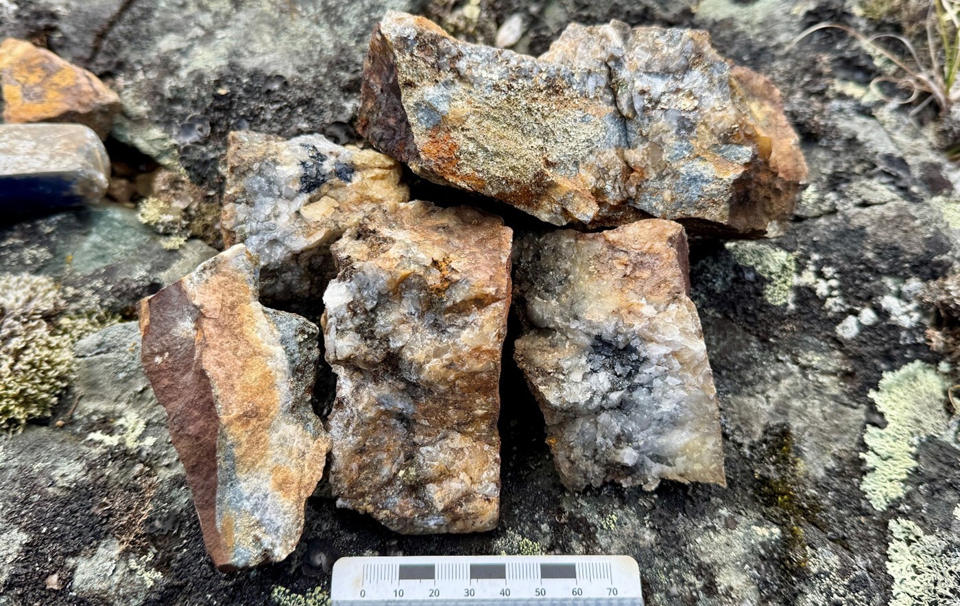 Rock sample M209538 from the Quantum target area. Sample returned 14.05g/t Au, 1385g/t Ag, 0.32% Cu.