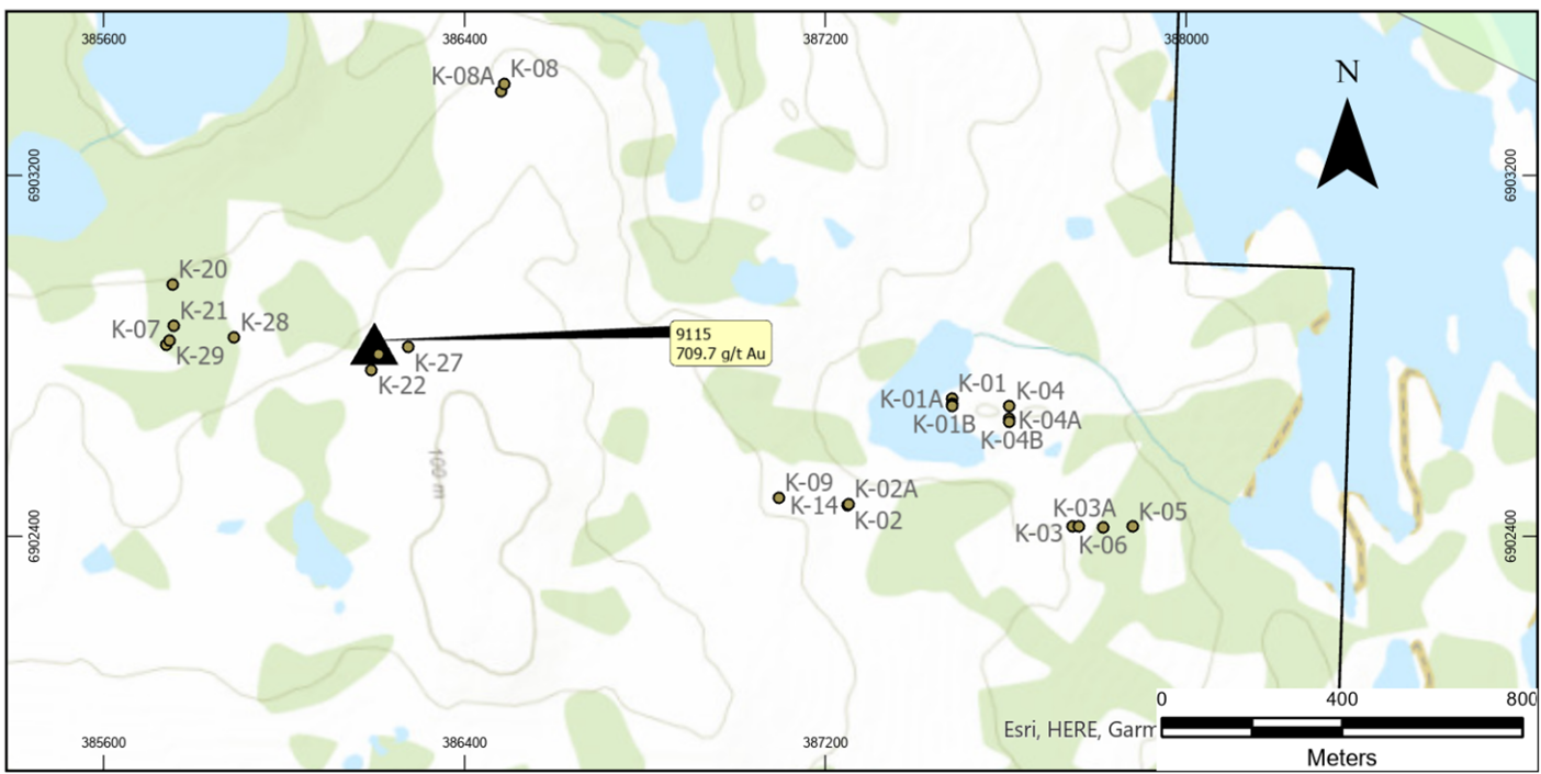Defender Prospect Location Map Known Drill Hole Collars & Sample 9115 (NAD83 Zone 15N)