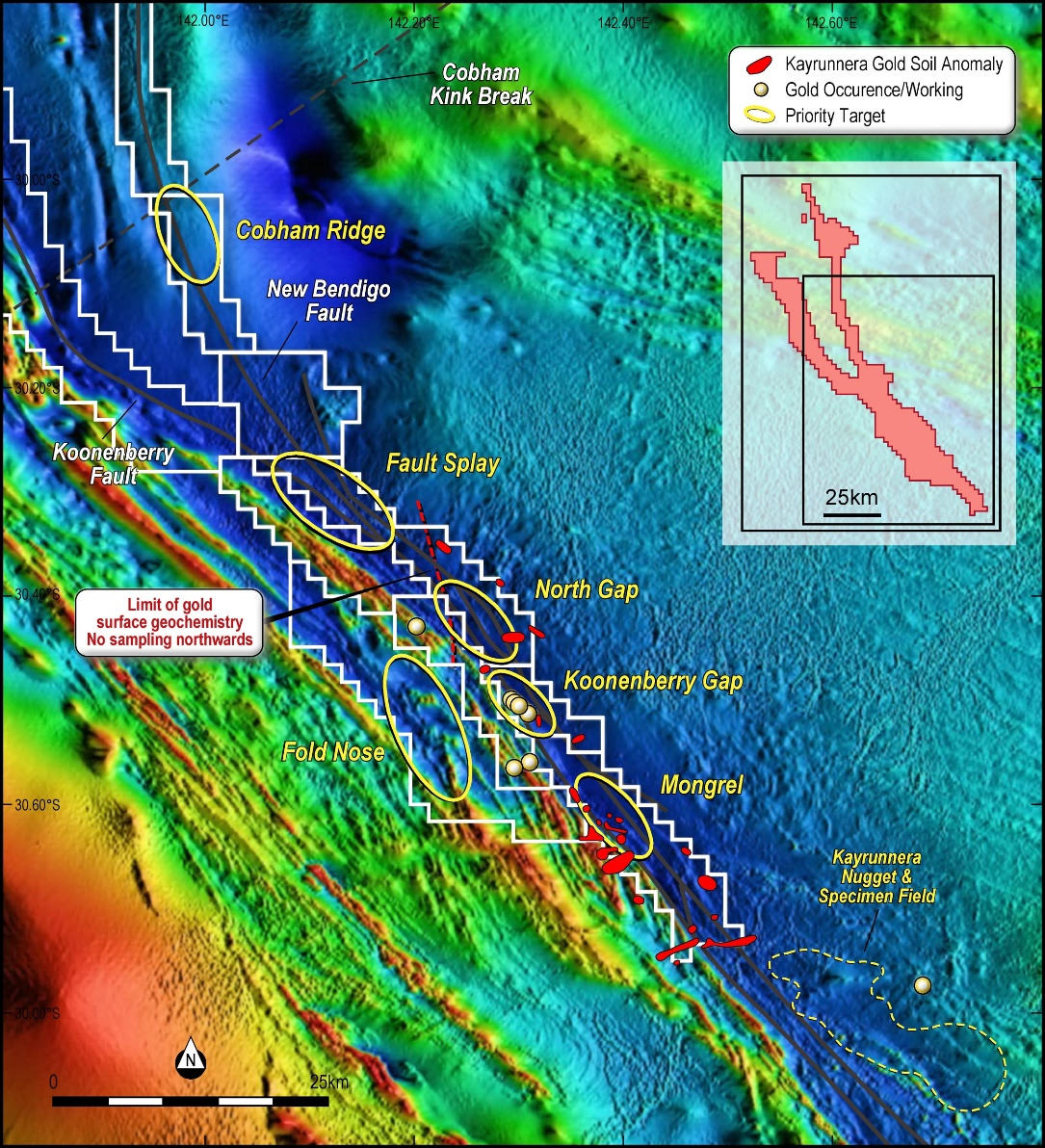 - High Priority target where the deep-seated mantle tapping regional Koonenberry and New Bendigo faults converge