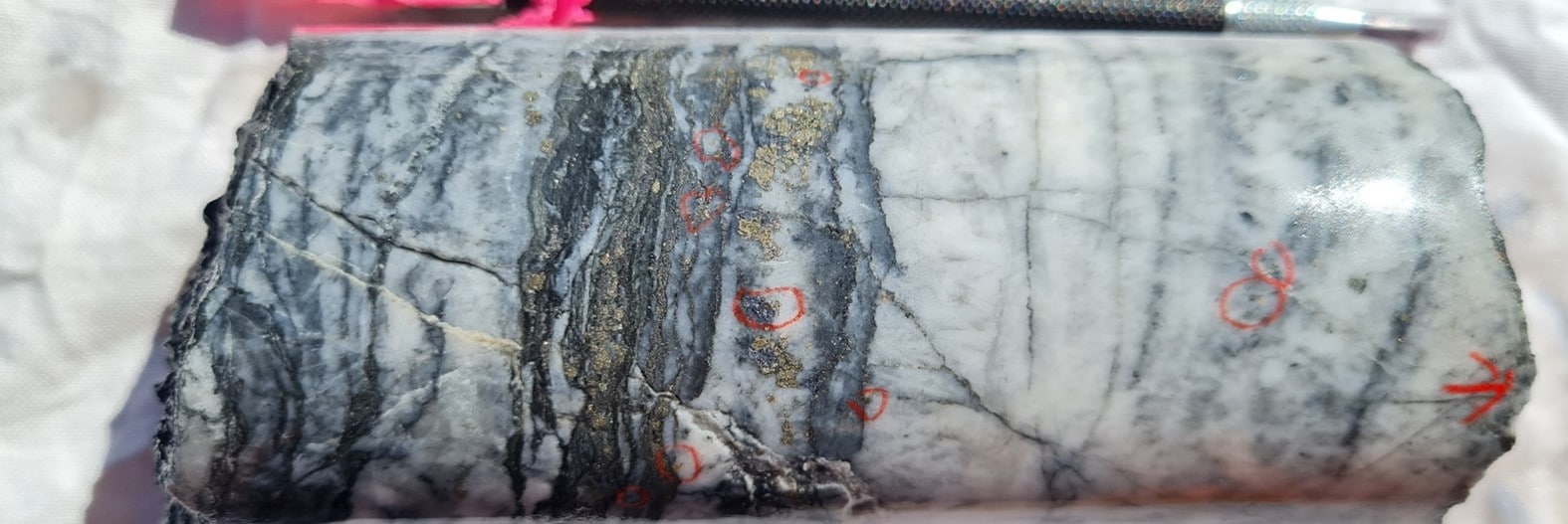 - Drilling intercepted shale, with each hole hosting multiple zones of significant quartz-pyrite veining.